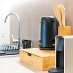 - ❓Is there a kitchen available at Stylish apartment for guest use?Yes, Stylish apartment is furnished with a fully equipped kitchen and offers an electric kettle, a refrigerator, and kitchenware as well.